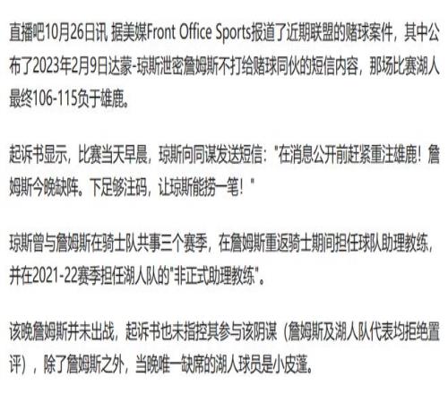 NBA赌球泄密内容曝光!谈及詹姆斯