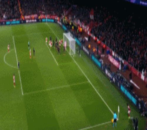 比赛第22分钟,阿森纳获得右侧角球机会,萨卡将球开出,廷伯跃起头球破门!众所周知,让阿森纳获得角球相当于给了点球,比分1-0!