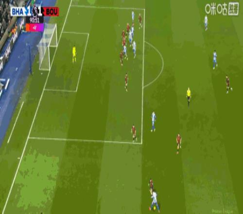 第90分钟,范黑克助攻,科斯图拉斯倒钩绝平,布莱顿1-1
