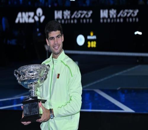 第一次捧起澳网奖杯的阿尔卡拉斯,当然制造了许多纪录,尤其是“最年轻全满贯选手”这一荣耀,更让他的前程看上去无限远大。