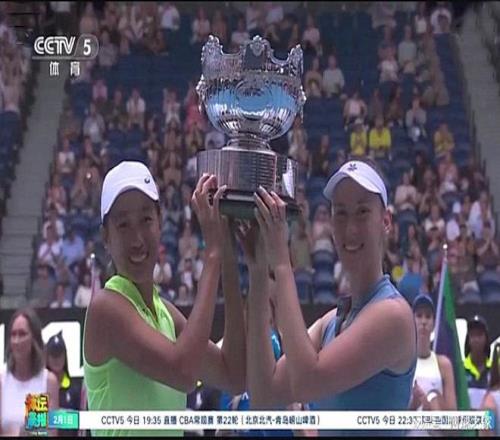 在今年的澳大利亚墨尔本,中国老将张帅与比利时人梅尔滕斯搭档,勇夺澳网女双冠军。这是张帅时隔七年再度拿下大满贯女双冠军, 成为今年澳网最靓丽的中国风景。赛后,央视CCTV5体育频道特地为张帅制作了专题节目,在《体坛晨报》中播出,时长达到了7分35秒。
