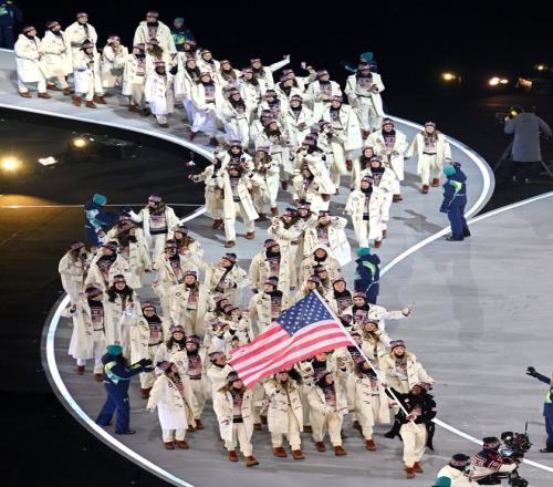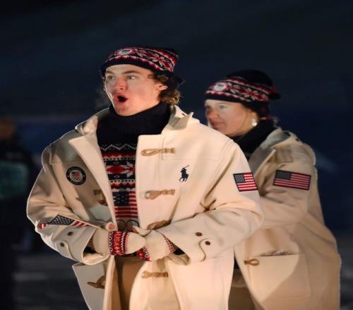 而且美国队的这套“学院风大衣”最近火的嘞,一跃成了精英阶层的社交货币,Ralph Lauren的官网在代表团入场后的 15 分钟内,访问量激增400%。