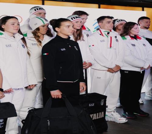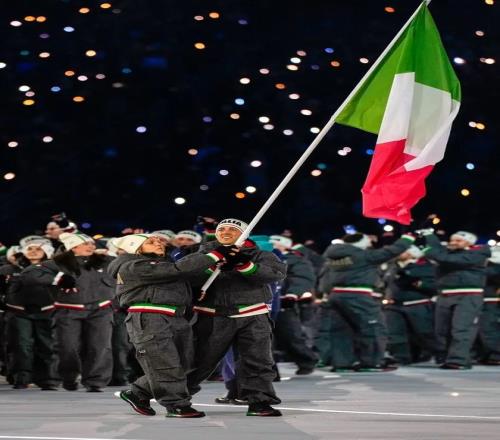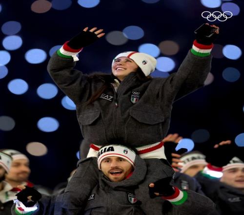 自 2012 年以来一直为意大利设计奥运服装的阿玛尼,此前曾将这种元素融入到意大利代表队在 2022 年北京奥运会上穿着的旗帜图案披风外套中。