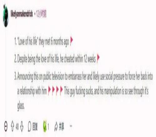 他公开宣布这件事,让她难堪,很可能是想利用社会舆论压力逼她回到他身边。这家伙真是太烂了,他PUA的手段一眼就能看穿。”