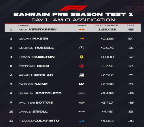 时间过得真快,巴林季前测试也是在今天正式开启!从上午的情况来看,维斯塔潘跑出1:35.433的成绩暂列第一,他一共跑了65圈。还有一个利好红牛和麦克拉伦的消息传来,飞哥在社交平台表示:“今年很有可能是梅奔大杀四方的一年。”