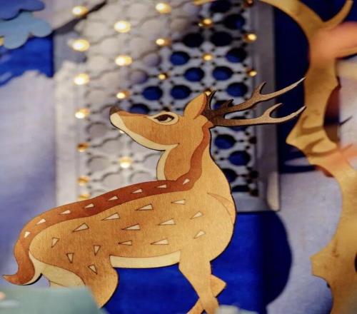 毫无疑问,今年这件作品主打的非遗技艺就是“细木镶嵌”,打开以后就能看到内里别有洞天的画面