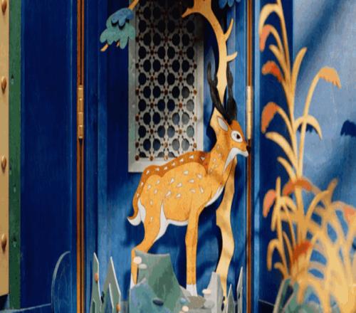 只不过,国窖1573创作的这只多宝格打开以后不是文物,而是各种用细木镶嵌方式呈现出的动物,寓意“福、禄、寿、喜”。