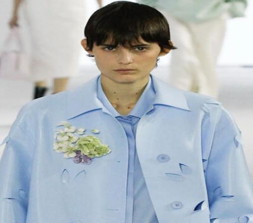 △Dior 2024春夏男装,模特戴的帽子上别着的就是绒花