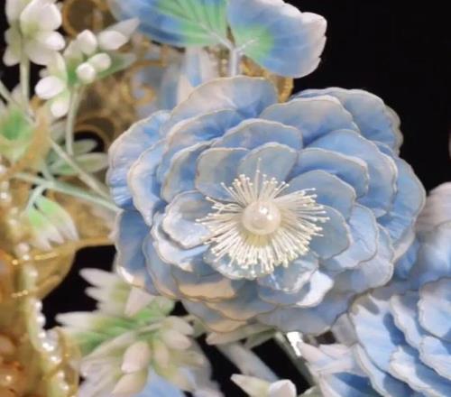 指的是把金、银等贵金属“拉”成细到头发级别的丝,再用各种独门手法,把金属丝做成纹样与立体结构,结合宝石珍珠镶嵌完成作品。