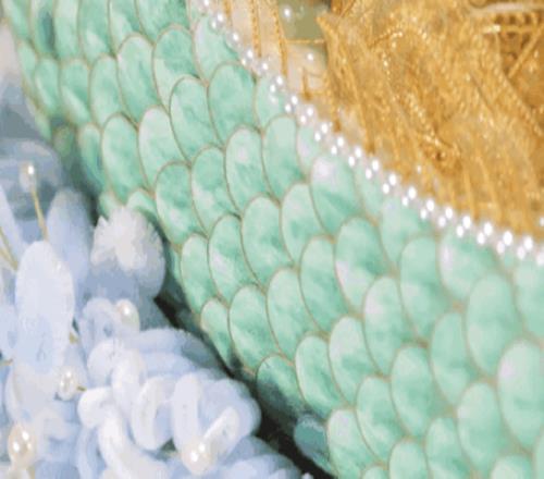 2023年的端午,国窖1573推出了一件名叫 “云龙出水”的作品,用绒花技 艺还原出了龙舟的形象