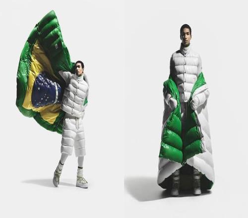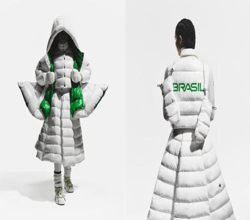 时隔近 60 年重返冬奥会的 Moncler 为巴西代表团设计了开闭幕式服装。Moncler 也专门邀请了巴西设计师 Oskar Metsavaht 共同合作,旗手的礼服以经典 Karakorum 登山夹克为蓝本,将多款羽绒服单品叠穿,核心单品是一件白色雕塑感斗篷,它的内衬镶嵌了巨幅巴西国旗,内搭羽绒背心和半身裙或裤装。