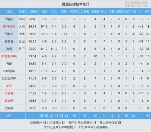 开拓者惨败54分是队史第六大分差,队史最大输球分差是65分(1997-98赛季59-124不敌步行者)。掘金狂胜54分,创造队史最大赢球分差,此前纪录是52分。单场157分不仅是本赛季联盟最高分,也是掘金队史客场得分纪录!
