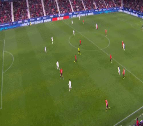 第89分钟,皇马后场失误送大礼,塞瓦略斯回传时直接将球“传到”加西亚脚下,加西亚轻松断球后传给莫罗,后者接球往前推进到禁区弧顶前再精妙直塞,加西亚及时跟进,禁区内接球冷静晃开回防球员,超近距离大力兜射,皮球应声入网,奥萨苏纳2:1绝杀皇马。客场爆冷输球后,皇马西甲8连胜被终止。