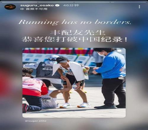 赛后,何杰也在社交媒体上恭喜了丰配友,“马踏东京,中国马拉松进入了205的时代,丰配友太硬了,硬刚两位日本最顶尖的选手,祝贺丰配友,又见证了一个新的时代,我们是对手同时也是战友。”