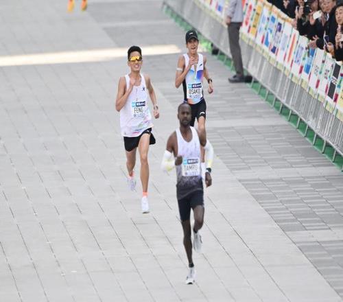 日本马拉松名将大迫杰在比赛中一路追赶丰配友,也成了丰配友能够创造纪录的动力之一。