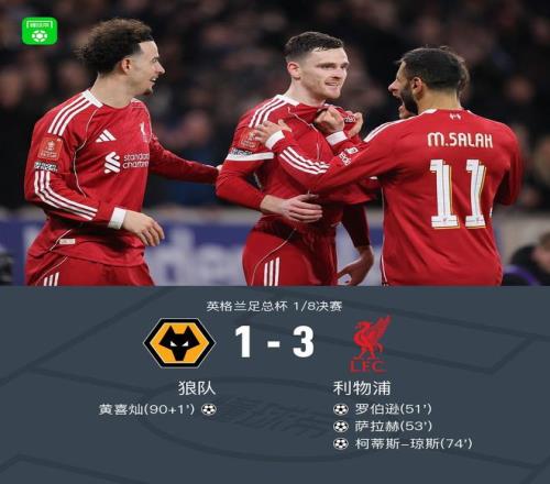 足总杯利物浦31狼队晋级,萨拉赫破门,罗伯逊、琼斯双双传射