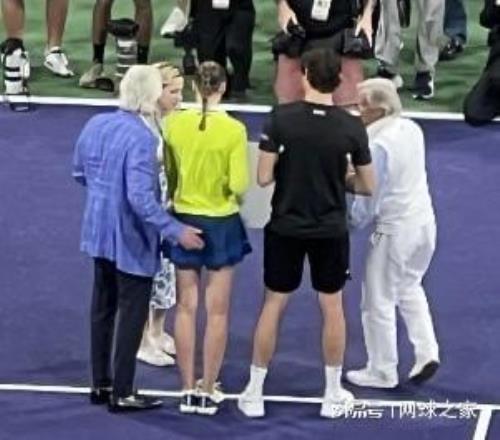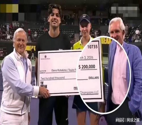 当地时间3月6日,新科澳网冠军莱巴金娜搭档美国名将弗里茨夺得了本届赛事慈善混双赛的冠军,捧走了20万美元的奖金 。这本该是一个属于网球、属于胜利的闪光时刻,然而在随后的颁奖合影环节中,意外发生了。