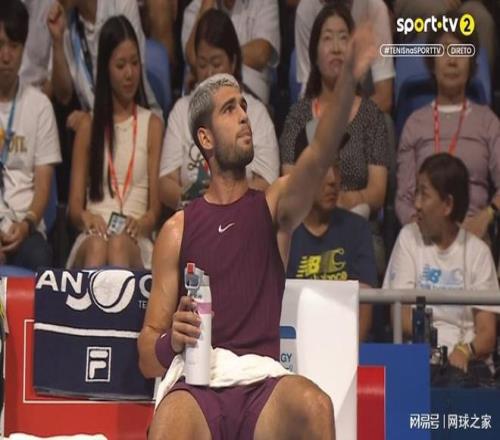 这次让阿尔卡拉斯不满的原因时,他想在发球前用毛巾擦下汗,结果却被裁判说超时违规,心里相当不爽,当时就对着裁判甩出了一句“好吧,那我就不能去拿毛巾了”,以此来表达自己的强烈不满。