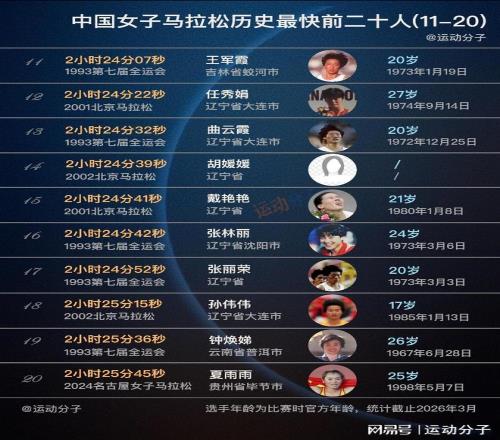 现役仅两人上榜,盘点中国女子马拉松历史最快前20人