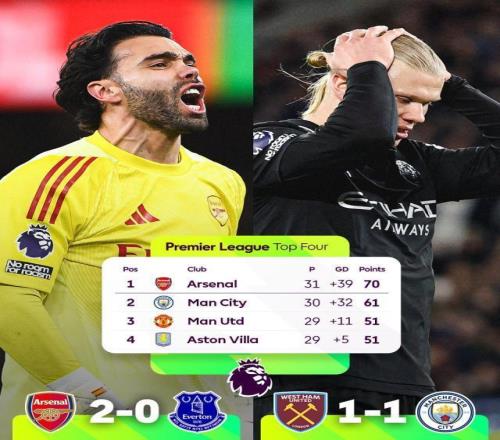 【英超】争冠悬念结束了阿森纳还剩7场领先曼城9分