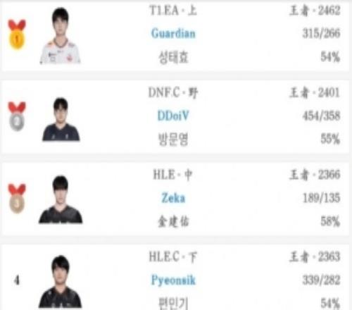 第二个宙斯T1青训人才辈出!04年上单Guardian登顶韩服