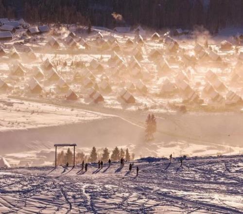 2026年1月,新疆禾木村银装素裹如童话世界,梦幻雪屋等特色民俗点燃冰雪经济。视觉中国 图