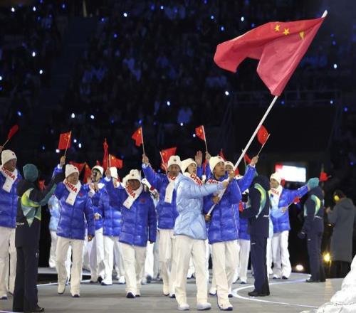 2月6日,中国体育代表团在开幕式上入场。新华社记者 李京 摄