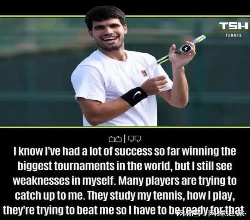 2023、2024年,阿尔卡拉斯连续两年夺取印第安维尔斯大师赛冠军;2025年印第安维尔斯大师赛,志在实现首次巡回赛三连冠的阿尔卡拉斯,在半决赛遭到英国小帅哥德雷珀的顽强阻击,最后三盘不敌对手。
