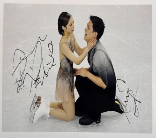 会见结束后,三浦和木原在我准备的照片上签了名,那是米兰冬奥会上最经典的镜头。三浦的签名签得非常认真,简直是在画一幅图。我问她是什么字?她笑着说:“这里面隐藏着我的冰上轨迹图”。