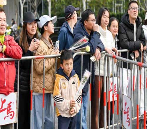 2026年3月15日,上海,选手在比赛中挥手和观众互动。澎湃新闻记者 朱伟辉 图
