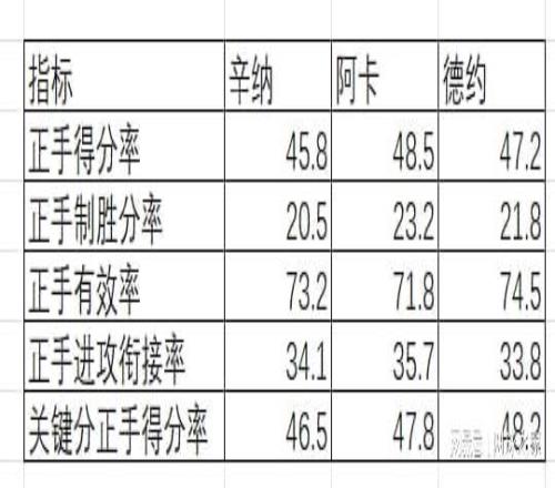 (2)效率维度:阿卡正手得分率、制胜分率领先,终结能力最强;德约正手有效率、关键分得分率最高,稳健性顶级;辛纳各项效率均衡,衔接流畅。