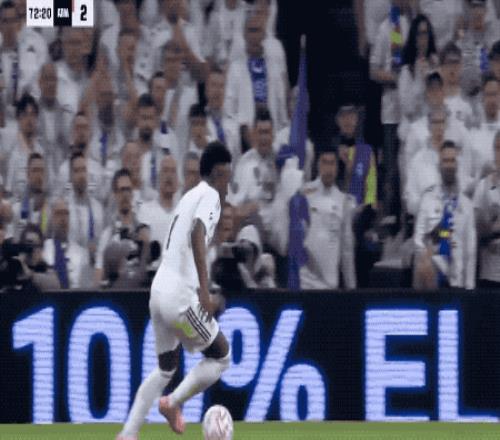 德比大战的精彩剧情还在上演,第72分钟,接到阿诺德的长传,维尼修斯横向盘带后,兜射死角,梅开二度。