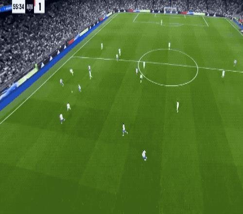 小西蒙尼游走到了中锋的位置,脚后跟巧妙助攻,卢克曼近距离将球打进,马竞取得领先。