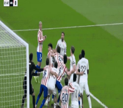 第21分钟,皇马开出角球,维尼修斯的近距离铲射被小西蒙尼门线解围,之后的补射也被小西蒙尼挡出。