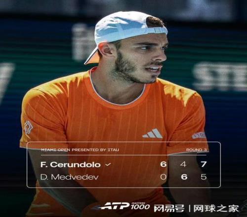 一周前,刚在印第安维尔斯斩获亚军的9号种子梅德韦杰夫,竟在迈阿密站第三轮以0-6、6-4、5-7爆冷不敌18号种子塞伦多洛,成为本站赛事迄今最大冷门之一。更令人错愕的,不仅是失利本身,而是这位2026赛季胜场领跑者,以一盘吞蛋的方式,再次暴露出关键时刻崩盘的脆弱神经——这一幕,距他在澳网遭遇的同样羞辱,仅过去两个月。