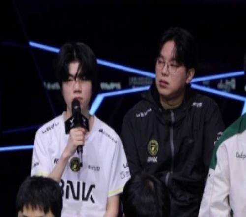 另外还有一个问题想问Faker选手,正好旁边坐着Gumayusi选手。在与新的下路组合进行磨合的过程中,到目前为止你觉得配合大概达到了百分之多少?就这两个问题分别请回答一下。