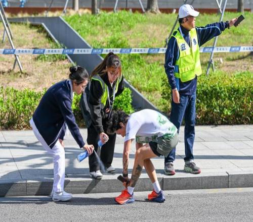 本次赛事以“人民城市”理念为引领,是普陀区打造“半马苏河”世界级滨水区的重要呈现。赛事保障全方位升级,882名高校志愿者分布各关键岗位提供贴心服务;赛道沿线设22个医疗站、15辆救护车,搭配骑行急救队与急救志愿者形成双重医疗防护;普陀区多部门协同联动,从交通管制到环境保洁,全方位营造安全有序的赛事环境。赛事秉持“跑者至上”理念,科学布局补给、冰站与喷淋站,终点为跑者准备了丰富补给与专业服务。