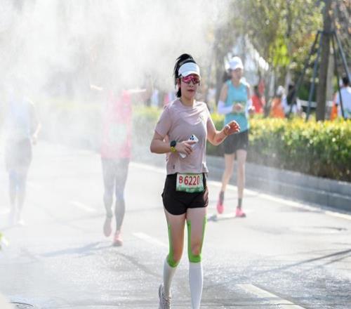 3月28日,上海,志愿者给选手喷洒降温喷雾。澎湃新闻记者 朱伟辉 图