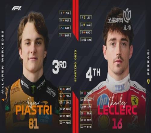 皮亚斯特里在赛季首场正赛中以出色的发车和稳健的发挥收获亚军,勒克莱尔终于摆脱“第四厄运”!第四至第十名分别是:拉塞尔、诺里斯、汉密尔顿、加斯利、维斯塔潘、劳森和奥康。