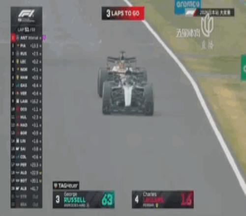 第43圈,拉塞尔从外线超越汉密尔顿,向前继续追击第3的勒克莱尔!
