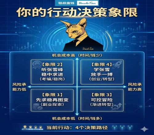 这时候你的机会成本最高,继续"稳定"反而是最大的风险。不妨像张雪一样,在计算过的前提下,追求高赔率