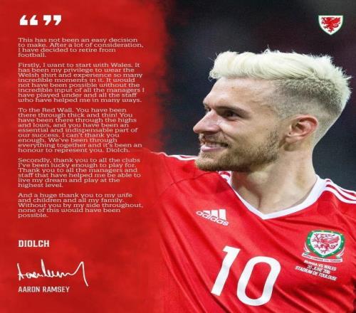 04月07报道 35岁威尔士中场拉姆塞在社媒自宣退役,结束19年职业生涯。