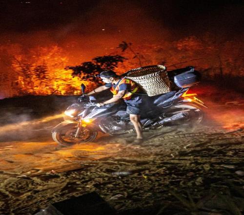 △ 2022重庆北碚山火期间,参与救援的摩托车。(图/郑新洽 摄)