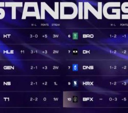 LCK今日赛果:T1横扫DNS排名上升BFX战绩惨淡位列倒数第一