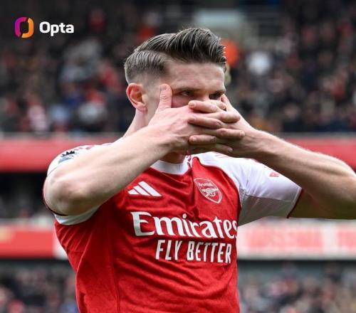 至此,哲凯赖什本赛季各项赛事已经打入18球——在英超时代(自1992-93赛季以来)只有亨利在1999-00赛季(26球)和桑切斯在2014-15赛季(25球)在阿森纳首秀赛季的进球数更多。