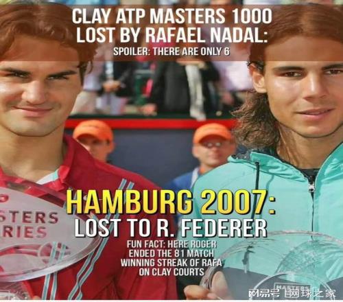 那么,纳达尔在蒙卡决赛曾经输给过谁?纳达尔输掉的红土大师赛决赛又有哪些呢?累计一共有7场,无一例外全都是输给了在其退役仪式上和其一起并肩而立的巨头们。且看: