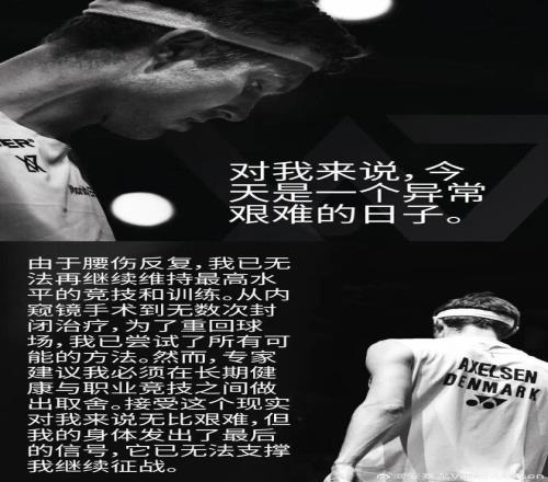 北京时间今天(4月15日),两届奥运冠军、32岁的丹麦羽毛球名将安赛龙宣布退役,他通过社交媒体表示,由于腰伤反复,已无法继续维持最高水平的竞技和训练,并感慨“竭尽所能,无愧于心”。