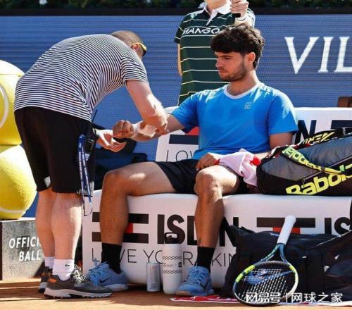 阿尔卡拉斯在4月15日巴塞罗那公开赛首轮对阵维尔塔宁的比赛中首次感到右手腕不适。尽管当时坚持完赛,但赛后疼痛明显加剧。