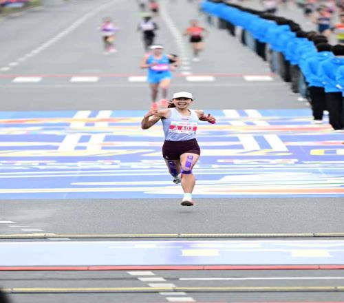 3月15日的仁寿。计时器定格在1:10:22。西南大学研究生在读三年级的刘君慧冲过终点线时,异常激动。她的身后是在今年东京马拉松PB到2:26:35的全马高手路颖。