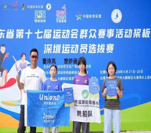 在广东省第十七届运动会群众赛事桨板项目深圳市选拔赛中,福强小学3名学子斩获亮眼佳绩在甲组女子单人200米和单人3000米比赛中楚妙涵、董诗岚都分别获得第一名、第二名的好成绩,并获得了代表深圳征战省运会的资格。